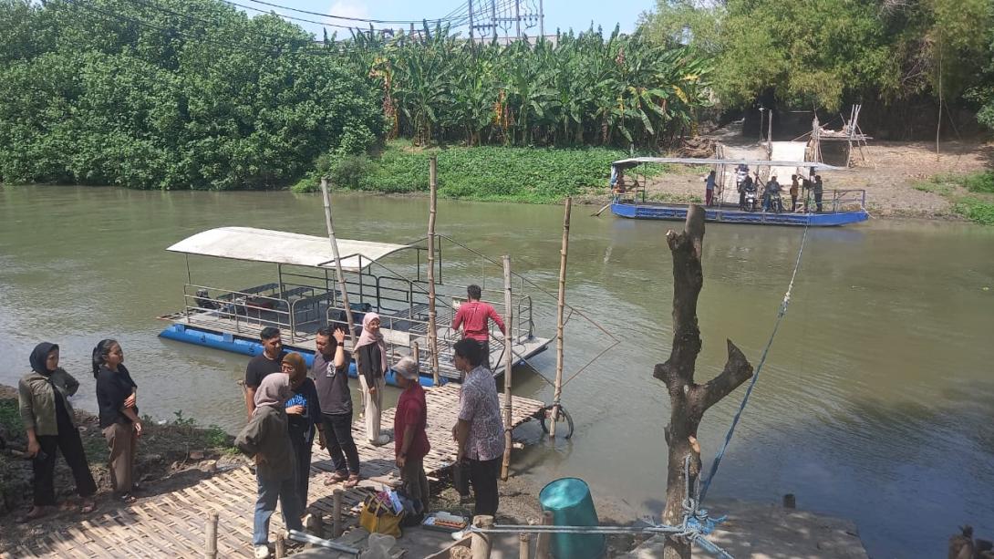 Along the banks of the Abrantes River near Surabaya, Eastern Java, Indonesia, Several mini ferries serve as the sole means of crossing between the two sides of the river. Operated manually by the local residents, these ferries glide across the water without the aid of motors, driven solely by the strength and skill of its operators. The cost of a one-way journey is a modest 2,000 Indonesian Rupiah, equivalent to approximately 0.13 USD. This traditional mode of transportation runs throughout the day, connecting communities and providing an essential link in the daily lives of those who live along the river.